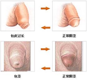 包皮过长是指包皮遮盖阴茎头,但能上翻露出阴茎头。如果包皮口狭小或包皮与阴茎头粘连,不能使包皮上翻并显露阴茎头者,则称为包茎。