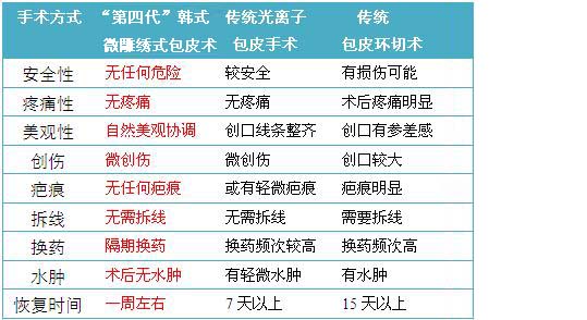 第四代欧式微雕绣式包皮术与传统手术效果对比